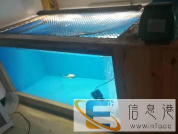 玻璃钢材质,实木外包,正面一侧玻璃,总长度1一米宽1.9米长,缸内水体一米宽1.5米长,侧虑。还有一套自制的三层滴滤,滤材齐全,含32W森森变频水泵和18W变频水泵各一台。缸体除滤材自重200多斤,3个人可以抬起。